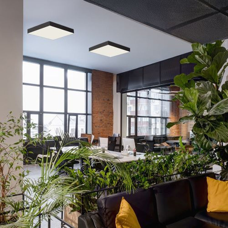 Plafondlamp met ingebouwde LED en een minimalistisch frame. De lamp heeft een ingebouwde schakelaar om de kleurtemperatuur van het licht te veranderen (3000K, 4000K, 6500K).