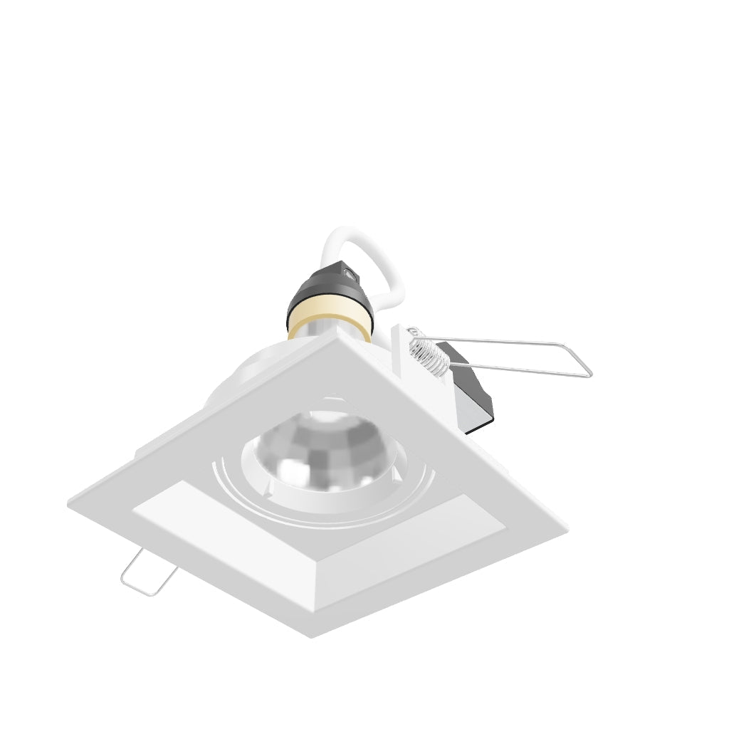 Rechthoekige verzonken lamp met kantelfunctie en GU10 fitting. Geschikt alleen voor installatie in gipsplaat.