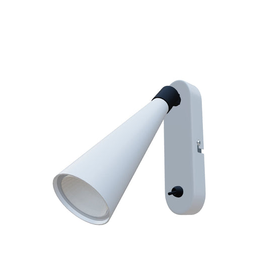 Wandlamp met een conische reflector voor een LED-lamp met een GU10 fitting, voorzien van een tuimelschakelaar op de voet van de armatuur.