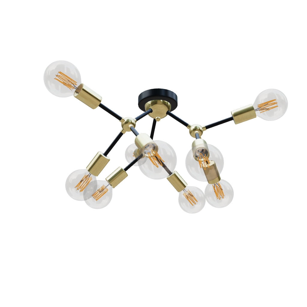 Design plafondlamp met decoratieve messing fittingkappen. Geschikt voor LED-lichtbronnen met een E27-fitting.
