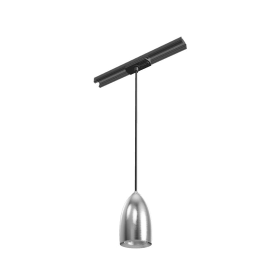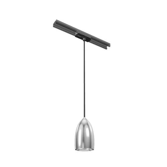 Hanglamp met lampenkap van chroom of mat nikkel. Zwarte textiel lampenkap met adapter voor 1-fase stroomrail.