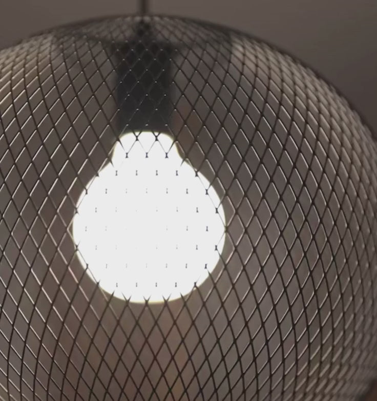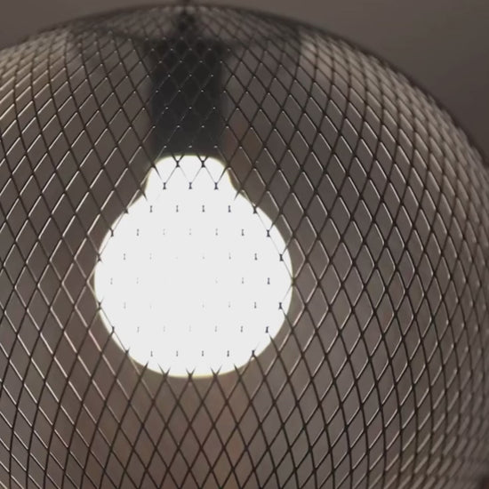 Een hanglamp in de vorm van een bol, gemaakt van fijn draadgaas, geschikt voor een decoratieve LED-lamp met een E27 fitting. De maximaal toegestane diameter van lichtbronnen is 9,5 cm.
