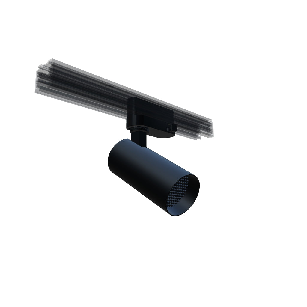 Cilindrische reflector voor 3-f. stroomrail met GU10 fitting.
