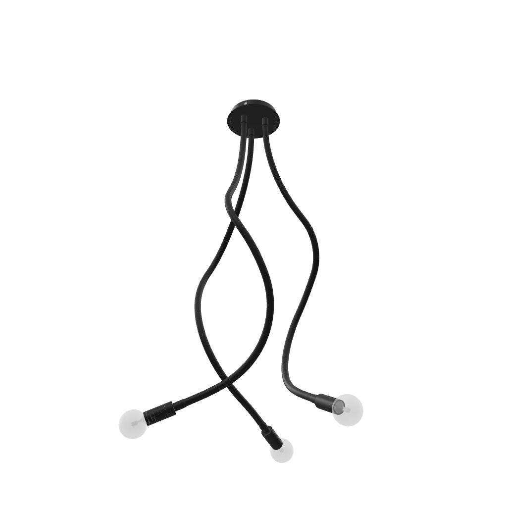 Plafondlamp met drie verstelbare armen, bedekt met silicone. Geschikt voor gebruik met decoratieve E27 reflector lichtbronnen.