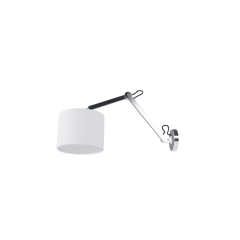 Wandlamp met lampenkap van textiel en verstelbare arm.