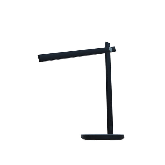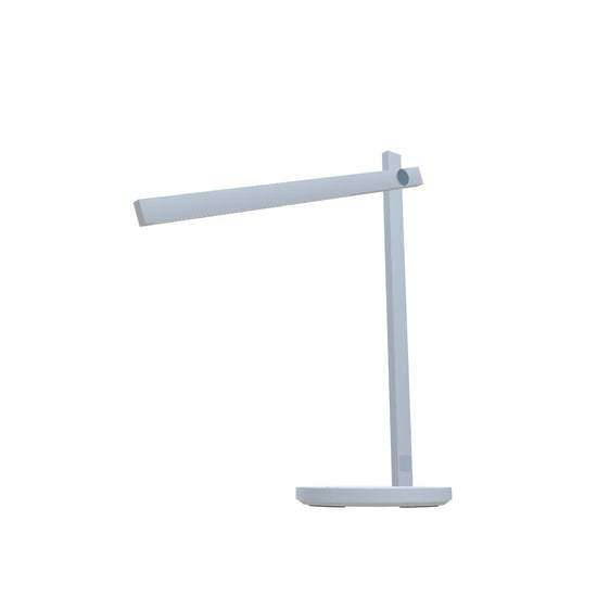 Bureaulamp met ingebouwde LED, een scharnierarm en een dimmerknop bovenop de reflector voor dimmen in drie stappen en instelbare kleurtemperatuur. De lamp kan aan een bureau of plank worden bevestigd door een aparte EMA C-klem (R14290, R14291) aan te schaffen.