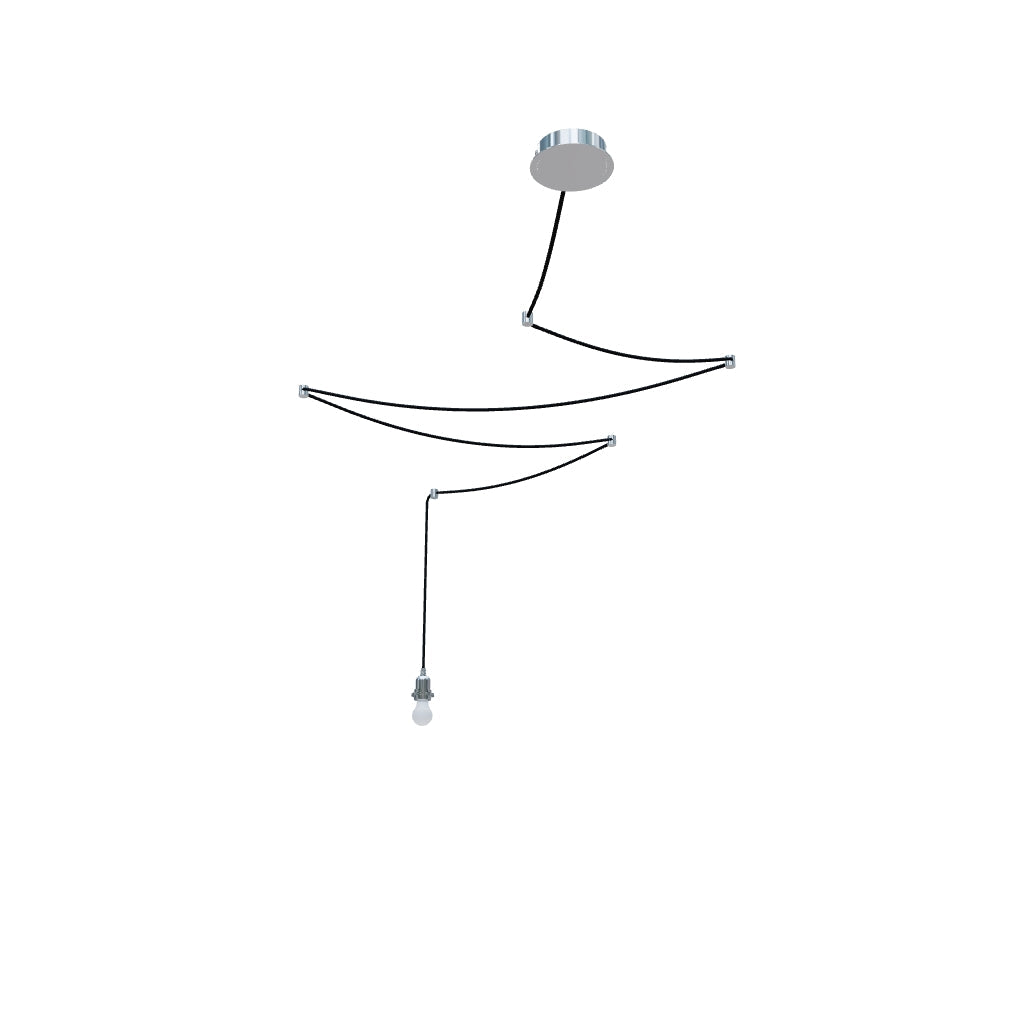 Vaiabele ophangset geschikt voor gebruik met decoratieve gloeilamp of het ophangen van lichte lampenkappen. Kan worden geinstalleerd op plafond of wand met muurbeugels op zwarte textiel kabel. De set omvat 4 zwarte kunststof muurbeugels of 4 metalen verchroomde muurbeugels. Muurbeugels kunnen ook apart worden besteld. Geschikte lampenkappen: ARISTA, ASPRO, DOUBLE, JAKARANDA, RON.